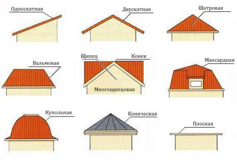 - toits à trois et quatre pans ils sont très rarement utilisés, mais ils ont l'air d'origine, tous les mêmes matériaux leur conviennent comme pour les toits à pignon. Lors de l'achat, il vaut la peine de prendre du matériel avec une marge, car il y aura plus de déchets avec le toit d'une structure plus complexe. Le plus économique dans ce cas sera le métal;