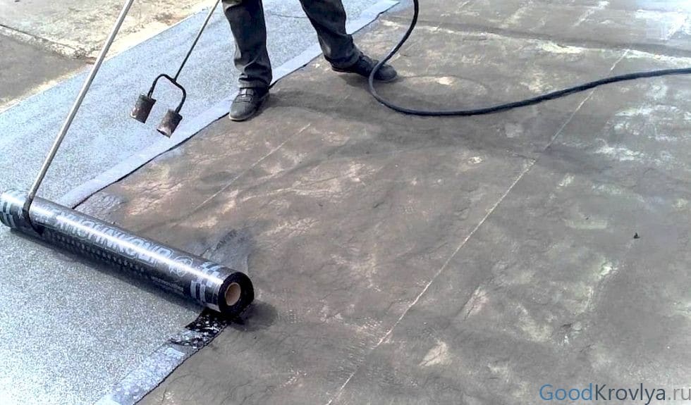 L'installation de linocrom est effectuée par temps sec et calme, après avoir préalablement nettoyé la surface du toit. La couche inférieure est chauffée avec un chalumeau ou un brûleur, les rouleaux de matériau se chevauchent.