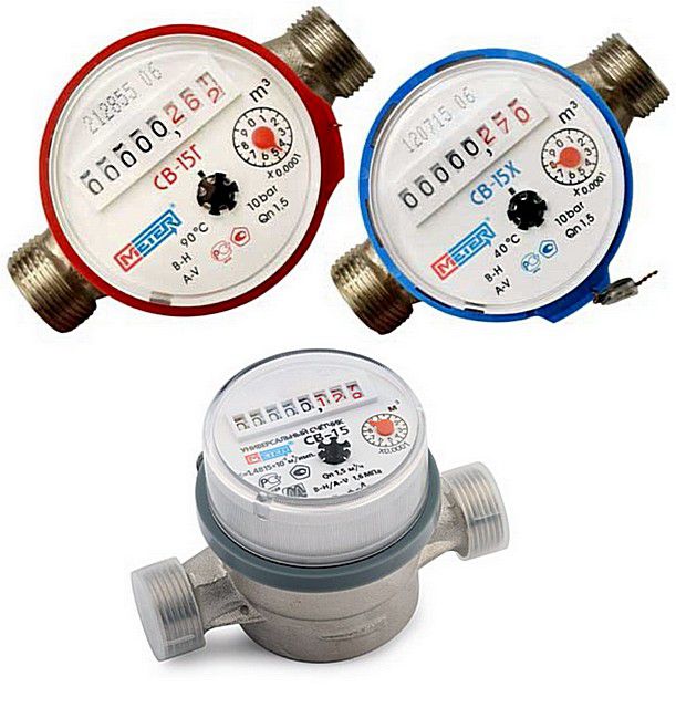 - compteur d'eau à l'eau froide conçu pour mesurer le volume d'eau jusqu'à 300C, pour plus de commodité, les fabricants peignent les boîtiers de ces appareils en bleu;