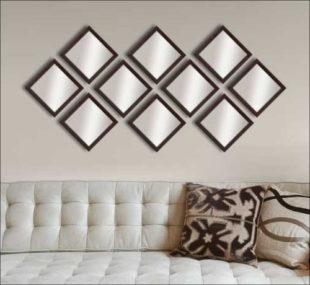 Décoration murale dans des miroirs en vrac - C'est une technique de décoration à la mode qui sauvera le mur du vide. De plus, avec son aide, vous pouvez ajouter de la lumière et donner de l'originalité à la pièce. Pour cette technique, il vaut mieux prendre les mêmes petits miroirs avec style. Les tailles et les formes peuvent varier légèrement. Les miroirs ronds et carrés semblent intéressants, et ceux qui veulent rendre le décor unique utilisent des miroirs faits à la main. Si vous aimez expérimenter, vous aimerez la forme des fleurs ou des gouttes.