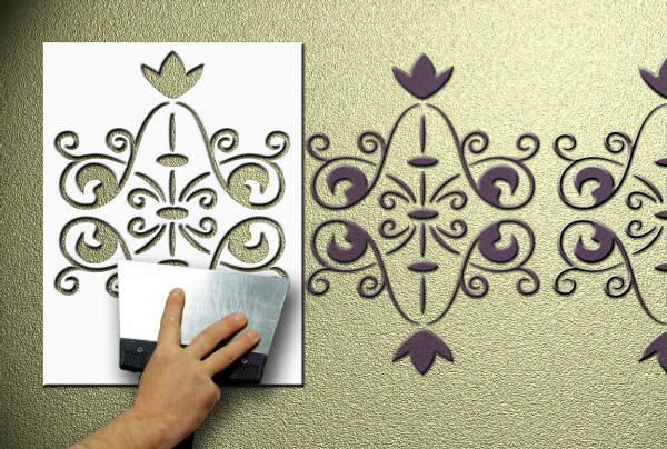 Il est préfabriqué en plastique ou en carton épais. Pour appliquer le motif souhaité, la pièce est pressée contre le mur à l'endroit où se trouvera le fragment et soigneusement peinte. Remplacez ensuite le modèle suivant et répétez la procédure. La peinture est mieux appliquée à l'aide de pinceaux ordinaires, d'un rouleau ou d'une éponge.