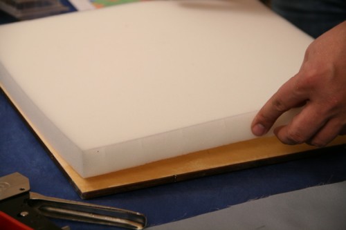 - pregătirea bucăților de țesătură. La dimensiunea fiecărui element merită să adăugați cote la grosimea plăcii și la îndoire în partea greșită;