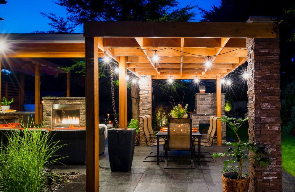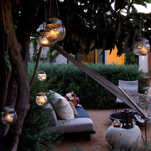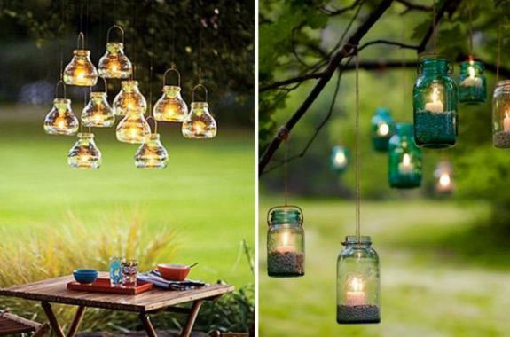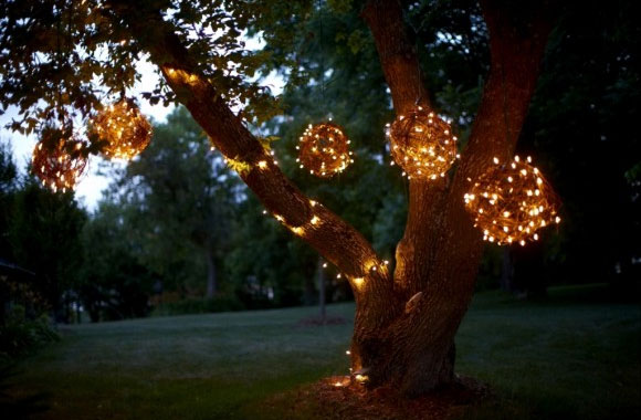 - lumini pandantive include felinare și ghirlande care pot fi atârnate de crengile sau tavanele copacilor în foișoare;