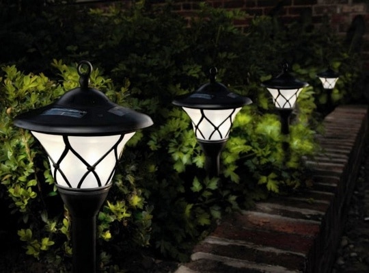 - lumini solare alimentate - Un mod original și foarte economic de a ilumina anumite zone ale site-ului. Utilizarea unor astfel de lămpi nu poate fi decât în plus iluminat electric. În timpul zilei, acumulează energie de la soare, iar noaptea emit o lumină plăcută moale. Instalarea este cât se poate de simplă - lampa este instalată acolo unde este necesară iluminare suplimentară, nu este nevoie de șanțuri și, dacă este necesar, poate fi mutată cu ușurință într-un alt loc. Astfel de lămpi pot fi de orice dimensiune, formă și design, nu sunt ieftine, dar nu vor folosi electricitate. Bateria va fi încărcată chiar și pe vreme noroasă;
