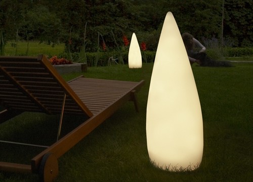 - Indici sau lumini reflectorizante direcționează fluxul de lumină în jos, de aceea sunt folosite pentru a lumina cărările de grădină și paturile de flori;