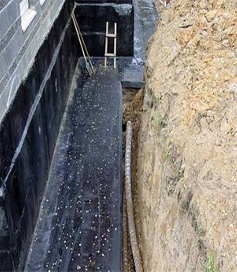 Il est nécessaire de lubrifier de la base même de la fondation et au-dessus de la limite du sol de 20-25 centimètres. Il est nécessaire d'appliquer plusieurs couches pour que l'épaisseur totale du revêtement protecteur soit d'environ 5 centimètres. Le mastic de bitume pénètre bien dans toutes les fissures et joints, les scellant. Sa durée de vie est de 5 ans, ce qui est une courte période. Ensuite, il commencera à se fissurer et à laisser de l'eau dans le béton. Pour prolonger considérablement la durée de vie de la couche de protection, il est recommandé d'utiliser des mastics bitume-polymère.
