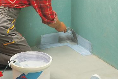 Avant d'imperméabiliser la salle de bain, préparez soigneusement la surface des murs pour la mise en œuvre travaux de réparation. Le sol et les murs doivent traiter avec une solutionconsistant en un mélange ciment-sable. Devrait fermer toutes les fissures, creux et irrégularités de surface. La chape doit être lisse et de haute qualité, au maximum de bonne et de haute qualité plâtre les murs. Après cela, retirez tous les débris et la saleté en excès de la surface des murs et du sol et passez apprêt. Cela permettra aux matériaux d'étanchéité de mieux interagir avec la surface, c'est-à-dire d'avoir une bonne adhérence au mur ou au sol.- Vient ensuite appliquer une composition d'imperméabilisation sur la surface du mur. Lisez attentivement les instructions de la composition que vous avez choisi de travailler. Appliquer le mélange uniformément sur la surface avec un pinceau. Une attention particulière doit être accordée aux endroits où les joints, les coins et autres endroits difficiles à atteindre. Là, vous pouvez appliquer une double couche pour obtenir une protection plus efficace et empêcher la pénétration de l'humidité dans de tels endroits. Vous pouvez également utiliser des matériaux de renforcement, tels que des matériaux de renforcement sous la forme d'un ruban de renforcement, qui se superpose à un coin ou à un joint.