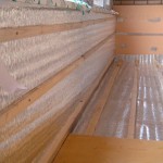 - Après avoir fixé la caisse, nous procédons à installation de laine minérale. Cela nécessitera un adhésif spécial à base de ciment. Vous pouvez utiliser une agrafeuse de construction si la base où l'isolant sera fixé est en bois. Prenez un rouleau de laine minérale et coupez-le en morceaux de la bonne taille à fixer avec de la colle dans l'espace entre les caisses. Ainsi, vous pouvez isoler les murs et le plafond avec le sol.