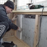 - Alors aussi nous construisons une caisse, avec un pas d'environ 50 cm, la fixation de planches de bois avec un perforateur -percer aux murs et au plafond du balcon à l'aide de coins et de chevilles. Si vous isolez le sol, procédez de la même manière, mais en utilisant des planches de bois de plus grande épaisseur 50 × 100 mm pour créer une bonne résistance.