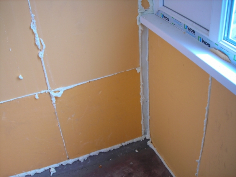 - Il faudra d'abord créer l'étanchéité, car la laine minérale a peur de l'humidité et perd en même temps ses propriétés de conservation de la chaleur. Par conséquent, vous devez créer une couche initiale de matériaux d'étanchéité pour empêcher l'humidité de pénétrer à travers le mur ou la cloison du balcon. Pour ce faire, vous pouvez utiliser du polyéthylène spécial ou un autre matériau similaire, par exemple à base de papier d'aluminium. Dans ce cas, vous devez vérifier les fissures dans les murs à travers lesquelles l'air et l'humidité pénètrent. S'ils sont trouvés, ils doivent être réparés à l'aide d'une mousse de montage, ce qui est assez efficace pour un tel travail.
