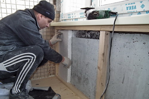 La deuxième option. Réchauffement du balcon avec de la laine minérale