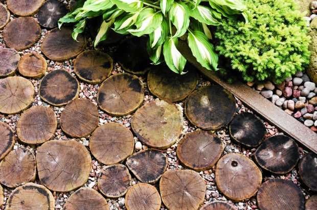 Sciant des grumes en petites souches de 10 à 20 cm, elles peuvent être utilisées comme base pour un chemin de serre ou un chalet.