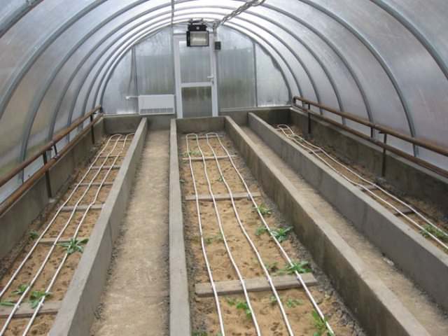 Il est tout à fait possible de faire l'arrosage goutte à goutte dans une serre de vos propres mains. Tous tuyauxau moyen de laquelle l'approvisionnement en eau est effectué, est placé à la surface du sol ou à l'intérieur.Une caractéristique distinctive de l'irrigation goutte à goutte est que la portion d'eau entrant dans les plantes est petite et est fournie avec une légère pression d'eau.