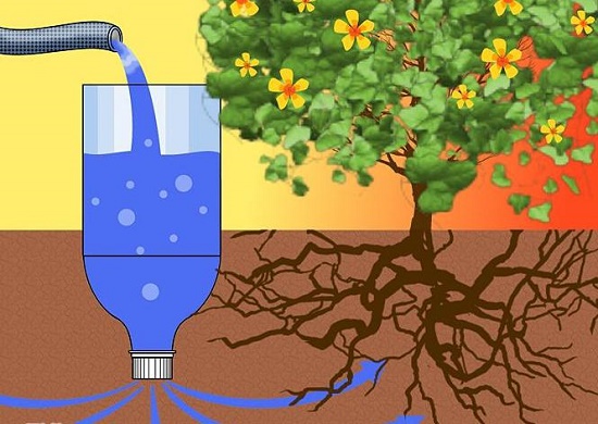 Il est clair que les déchets dans ce cas seront minimes. Cette méthode d'irrigation est considérée comme la moins chère et nécessite des coûts minimes pour les bouteilles en plastique. L'irrigation souterraine simplifiée n'est pas entièrement automatique - le jardinier devra encore remplir périodiquement les conteneurs creusés dans le sol avec de l'eau.