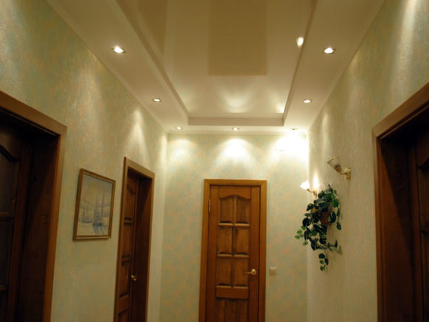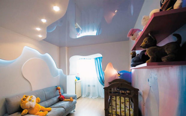 - Masquage des irrégularités et des communications. Le film PVC fini dans sa forme finie a une surface parfaitement plate, qui a l'air très fraîche. Mais, à partir de la paroi supérieure de support, elle est à une distance d'environ 5 à 10 cm, et de cette manière vous permet de masquer les irrégularités de construction, sans faire de grands efforts et, par conséquent, des coûts. Il cache également d'autres communications telles que les tuyaux et câblage électrique;