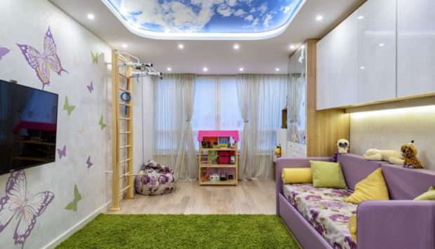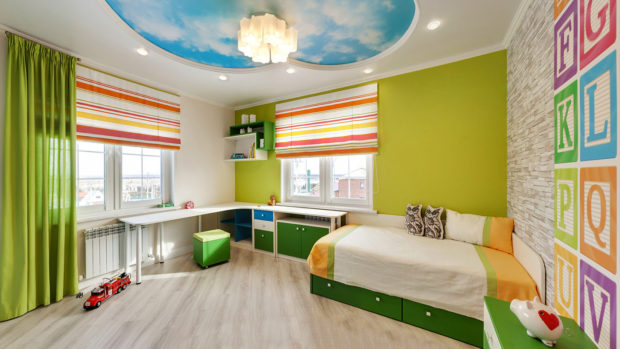 Pour les enfants, la meilleure chose est de réaliser quelque chose de brillant et de fabuleux, dont chaque enfant rêve. Cela peut être une copie de votre personnage de dessin animé préféré, un ciel bleu ou étoilé, ou tout autre dessin positif. Découvrez les préférences de l'enfant n'est pas difficile, faites de l'enfant une agréable surprise.