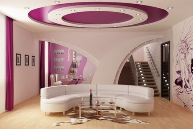 Il est possible de créer un plafond à deux niveaux dans chaque pièce de votre maison, mais il existe certaines fonctionnalités de mise en œuvre dans chaque pièce séparée. Cela doit également être pris en compte si vous souhaitez obtenir le résultat parfait, mais il est préférable de vous tourner vers des professionnels.