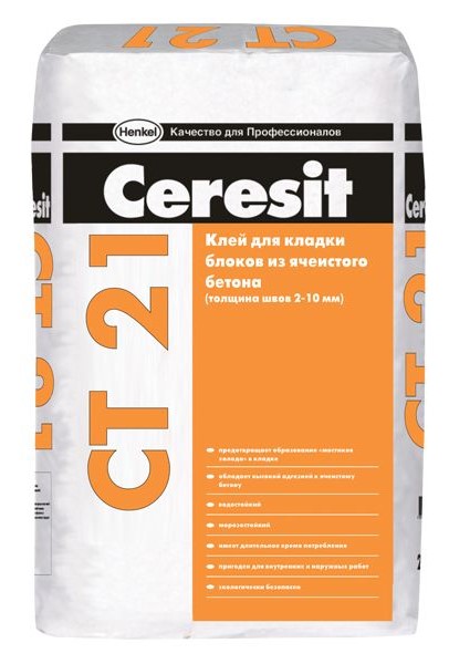 Fabriqué à base de ciment avec des charges minérales et un modificateur organique, le mélange adhésif Ceresit est parfait pour la maçonnerie en couches minces des murs extérieurs et intérieurs à partir de blocs de gaz ou de mousse.