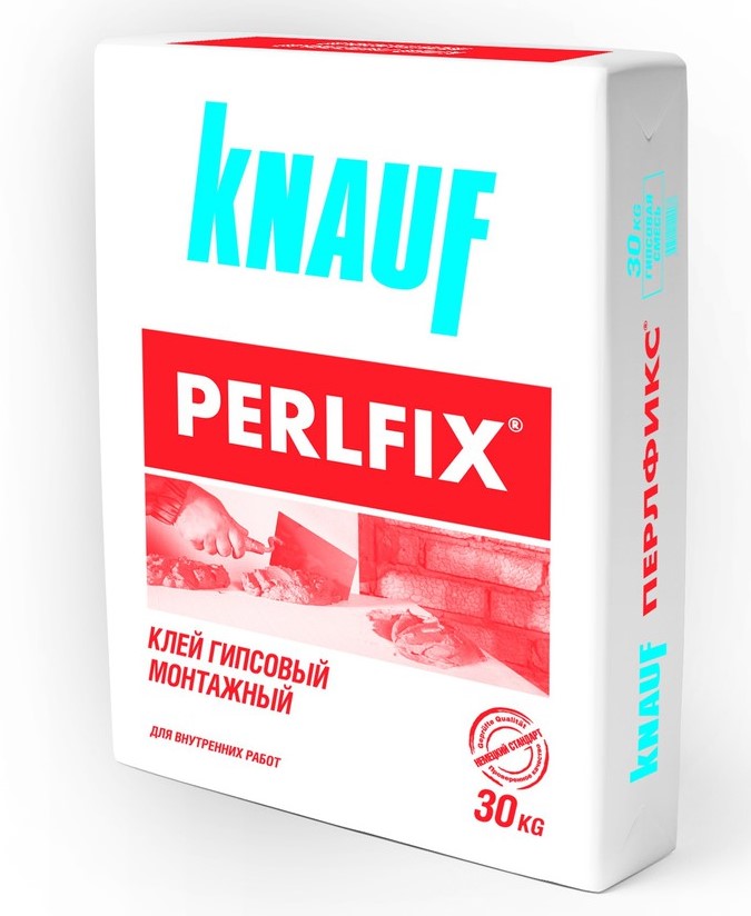 Adhésif écologique Knauf perlfix Il n'a aucun effet néfaste sur une personne, et sa plasticité vous permet d'aligner rapidement les blocs.