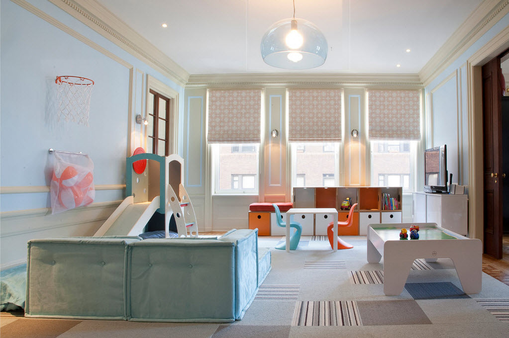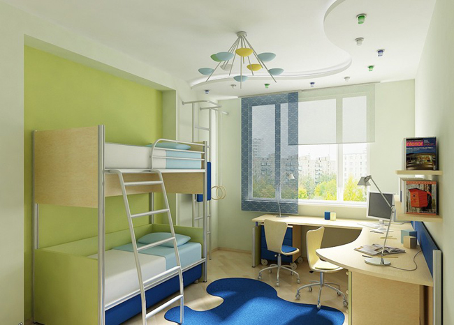 Je zrejmé, že nie vždy sú v apartmánoch izby, ktoré sú ideálne na usporiadanie škôlky. Potom musíte hľadať spôsoby, ako regulovať množstvo prirodzeného svetla a riešiť možné problémy pomocou lámp. napríklad, ak sú otvory v miestnosti príliš veľkéa svetlo sa ukáže byť príliš jasné, nezasahuje do zavesenia priesvitných okien na okno rímske závesyktoré kompenzuje nadmerné svetlo. V tomto prípade je potrebné zabezpečiť masívnejšiu hustotu roletyktoré sa môžu stať spoľahlivou ochranou pred zbytočným svetlom počas odpočinku.