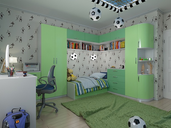 Je tiež potrebné postarať sa o dostatočné osvetlenie v blízkosti posteleaby študent mohol čítať pred spaním. Na tento účel je vhodná nástenná nástenná lampa alebo nočná lampa. Ak hovoríme o dieťati, potom v prípade potreby potrebujete slabé nočné svetlo, aby ste vytvorili mäkké svetlo.