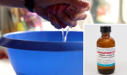 พบแอมโมเนียในอพาร์ทเมนต์ทุกแห่ง ในการเตรียมสารทำความสะอาดจากมันก็เพียงพอที่จะละลาย 1 ช้อนโต๊ะในน้ำ 1 ลิตร แอมโมเนียหนึ่งช้อนเต็ม วิธีการแก้ปัญหาที่เกิดขึ้นจะประมวลผลพื้นผิวที่ปนเปื้อนทั้งหมด จะสะดวกที่สุดในการใช้ของเหลวจากขวดสเปรย์ แต่คุณสามารถใช้ฟองน้ำหรือเศษผ้า ทิ้งสารละลายไว้บนพื้นผิวเป็นเวลาหลายนาทีหลังจากนั้นคุณสามารถล้างออกเบา ๆ ด้วยฟองน้ำชุบน้ำหมาด ๆ วิธีการที่คล้ายกันจะรับมือกับคราบจุลินทรีย์ขนาดเล็ก หากต้องการขจัดสิ่งปนเปื้อนที่รุนแรงออกไปควรทิ้งไว้ประมาณ 15-20 นาที